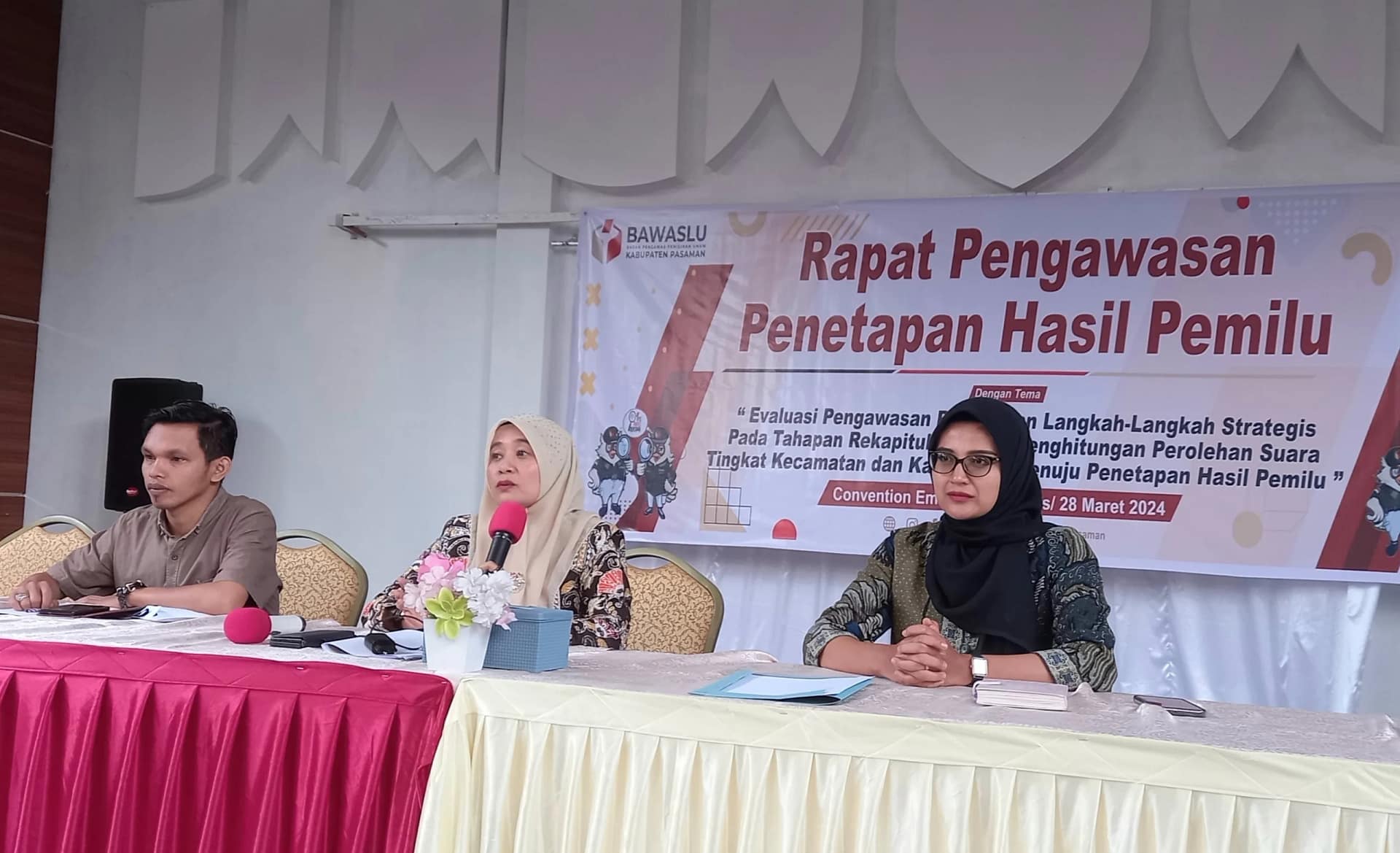 Pasaman, SaiyoNews.com – Bawaslu atau Badan Pengawas Pemilihan Umum Kabupaten Pasaman menggelar kegiatan Rapat Pengawasan Penetapan Hasil Pemilu pada Kamis pagi (28/03/2024) di Convention Emir Hotel Lubuk Sikaping.