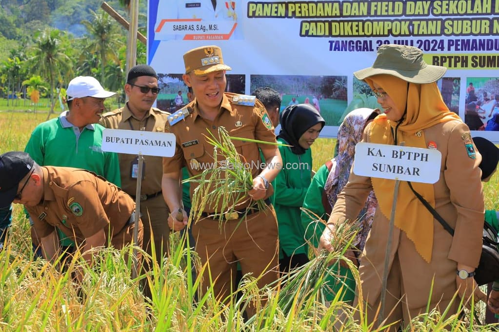 Usai pembukaan MTQ Tingkat Nagari Panti Utara, Sabar AS melanjutkan kegiatan Penen Perdana Padi Sekolah Lapangan Pengendalian Hama Terpadu (SLPHT) pada Balai Perlindungan Tanaman Pangan Holtikultura Provinsi Sumatera Barat di Hamparan Sawah Kelompok Tani Subur Panti Utara.