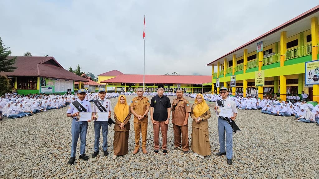 Pasaman, —SaiyoNews.com— Pada hari Senin, 9 September 2024, Granat DPC Kabupaten Pasaman secara langsung memberikan piagam penghargaan kepada Duta Anti-Narkoba Kabupaten Pasaman yang berasal dari SMKN 1 Lubuk Sikaping. Penyerahan piagam ini dilaksanakan di lapangan upacara SMKN 1 Lubuk Sikaping. Bapak Muslim, M.Pd., Dewan Penasehat Granat Kabupaten Pasaman sekaligus Kepala SMKN 1 Lubuk Sikaping, menyerahkan piagam tersebut. Selain itu, Ketua Granat DPC Kabupaten Pasaman beserta jajaran pengurus harian juga hadir dalam acara tersebut.