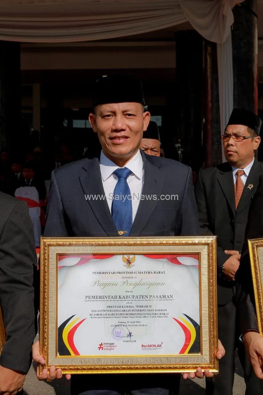 Bupati Sabar menilai penghargaan bukan merupakan akhir dari segalanya, melainkan awal untuk berbuat yang lebih baik lagi untuk kepentingan daerah dan masyarakat Pasaman. (Kontributor)