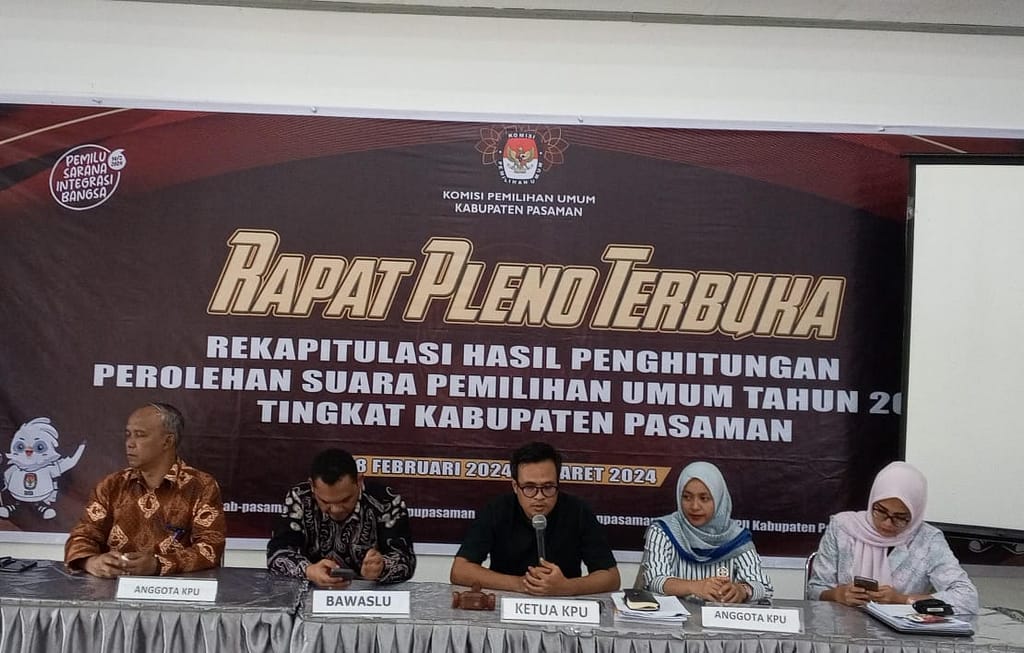 Berdasarkan Peraturan KPU Nomor 5 Tahun 2024 Tentang Rekapitulasi hasil penghitungan peroleh hasil suara dan penetapan hasil pemilihan umum,KPU melaksanakan rekap melalui mekanisme rapat terbuka. Ketua KPU Pasaman Taufiq membuka dan mengatur jalannya rapat pleno sesuai ketentuan yang berlaku.