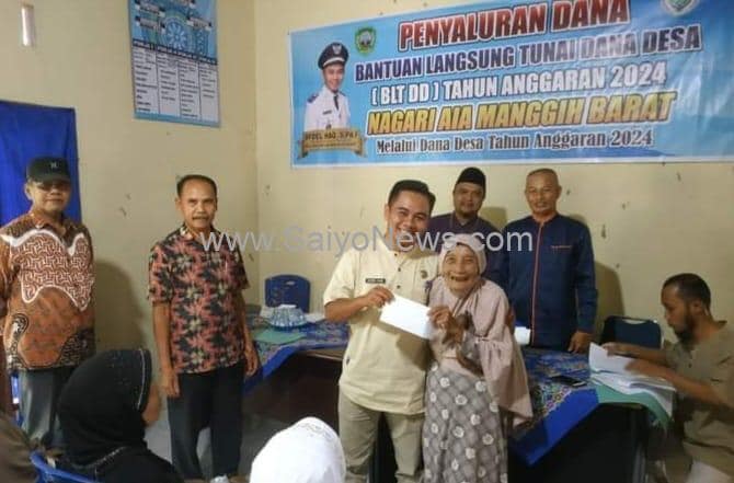 Pasaman, —SaiyoNews.com— Pemerintahan Nagari Aia Manggih Barat Kecamatan Lubuk Sikaping Kabupaten Pasaman serahkan Bantuan Langsung Tunai (BLT) tahap II yaitu untuk bulan April Mei dan Juni. Bantuan yang bersumber dari Dana Desa (DD) ini diserahkan kantor wali nagari setempat pada hari Jum’at (07/06/24). Kali ini pihak kenagarian Aia Manggih Barat serahkan BLT kepada 45 keluarga penerima manfa’at yang masing-masingnya mendapatkan bantuan sebanyak Rp.900.000.