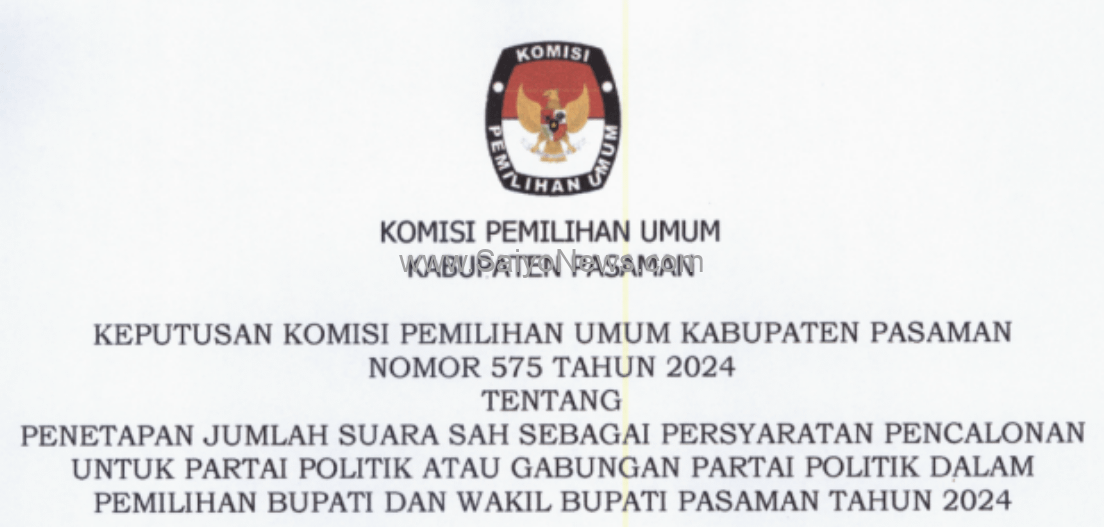 Hai #TemanPemilih, berikut disampaikan Keputusan Komisi Pemilihan Umum Kabupaten Pasaman Nomor 575 Tahun 2024 tentang Penetapan Suara Sah sebagai Persyaratan Pencalonan untuk Partai Politik atau Gabungan Partai Politik dalam Pemilihan Bupati dan Wakil Bupati Pasaman Tahun 2024. Sumber: KPU Pasaman